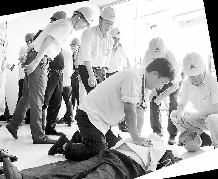 上圖為進一步增強全體職工防災抗災意識,6月27日上午,福能新能源在后海風電場舉辦了防臺防汛應急演練。此次演練有傷員搶救、人員轉(zhuǎn)移、車輛調(diào)度等方面。圖為心肺復蘇操作演練。