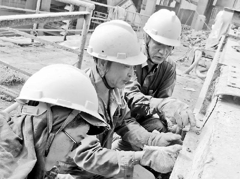 七一來臨之際,在福建水泥公司煉石廠水泥磨設(shè)備大修現(xiàn)場,廣大黨員堅守崗位,以大干的形式慶祝黨的生日。(蔣沛夏 攝)