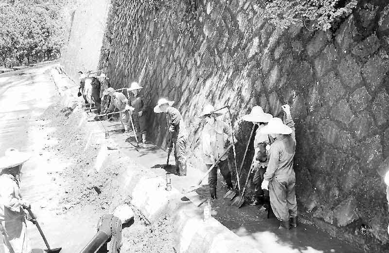 7月14日13時(shí),永安煤業(yè)公司西洋篩選廠組織全體人員到該廠地磅門口清理水溝。冒著酷暑,職工們通過一個(gè)下午的辛勤勞動(dòng),疏通了水溝,確保安全度汛。(曾芳春攝影報(bào)道)