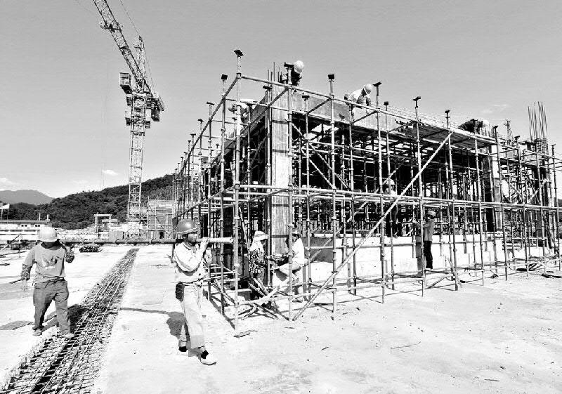 上圖 近日,由聯(lián)信集團施工的省重點工程———永安高鐵 南站廣場項目正在火熱進行中,員工們?yōu)榱吮Y|(zhì)保量地完成工程進度,冒著酷暑,在烈日下緊張地作業(yè)。(郭銀平攝)