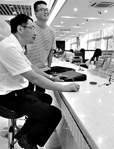 龔漢清(左一)在莆田市不動產(chǎn)登記中心等待收件。