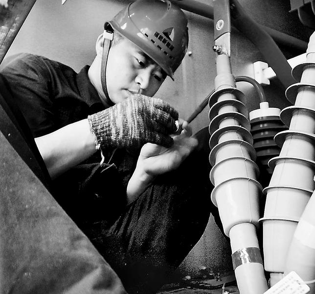 上圖近日,福能新能源公司隆教風電場升壓站進行了年檢,檢修員蕭振興冒著高溫天氣對開關(guān)柜線頭、螺絲進行更換。(林松攝)