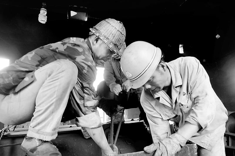 上圖永安煤業(yè)公司豐海篩選廠堅持技改“邁小步、不停步”,今年來先后實施了原煤倉清堵、皮帶自動校正和滾筒篩自動清堵等9項小改小革項目,使生產(chǎn)效率同比提高了14%。圖為8月11日,該廠機電修技術(shù)工人正對揀矸入料斗進行優(yōu)化技改,提高操作工人處理矸石卡堵效率。(黃發(fā)灼攝)