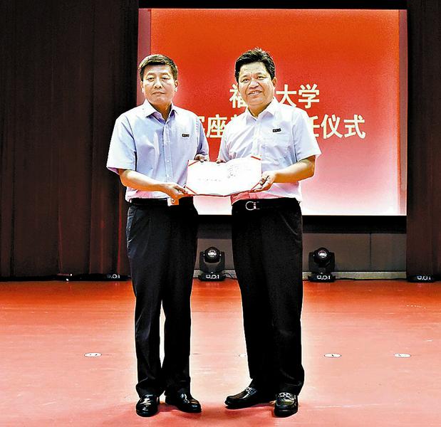 本報訊9月21日下午,福州大學客座教授聘任儀式在福州大學旗山校區圖書館博學廳舉行。福建省能源集團、福建石油化工集團黨委書記、董事長、福建E30聯盟總干事長、全國勞動模范、全國優秀企業家、全國企業文化建設突出貢獻人物林金本受聘福州大學客座教授。