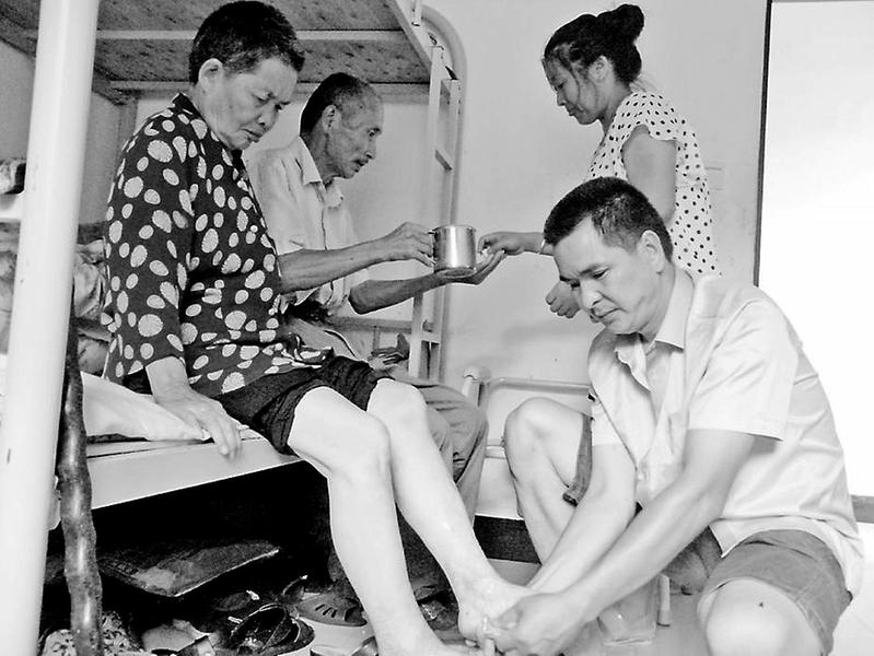 一個大男人能做到這么體貼,李默水直言是被逼出來的。他的母親發病后,有很長一段時間如同植物人一般躺在床上,妻子一個人忙不過來,李默水不但要煮飯洗衣、端屎接尿,還要給母親喂飯喂藥、擦身按摩,他甚至學會了給母親剪頭發。在李默水夫妻細心照料下,他的母親后來不但恢復了知覺,甚至還能夠顫巍巍地下地走幾步,就連隨訪的主治醫生都夸贊道:“老人能夠康復到這個程度真是奇跡,有你們這樣的好兒子好兒媳,老人真是有福了。”
