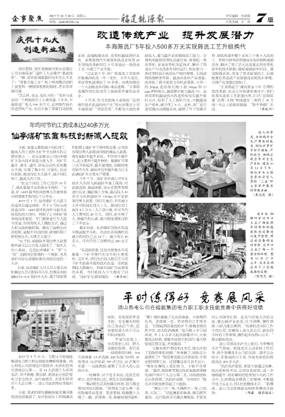 仙亭煤礦依靠科技創(chuàng)新減人提效