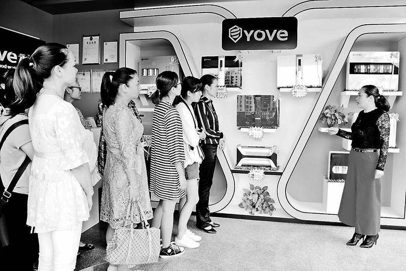 10月20日,福建煤電公司工會女工委組織基層女工主任及女職工代表,前往龍巖商業網點參觀離崗女職工成功的典范商鋪,分享就業創業心得。圖為大家參觀坑柄礦內退女職工張麗品經營的永匯凈水器龍巖總代理經銷點。