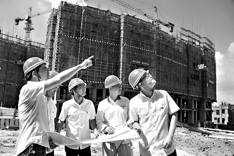 上圖聯(lián)美集團(tuán)干部員工以實(shí)際行動(dòng)認(rèn)真貫徹落實(shí)黨的十九大精神,推動(dòng)項(xiàng)目建設(shè)。圖為10月29日,德化王厝山安置房項(xiàng)目技術(shù)負(fù)責(zé)人楊國(guó)本帶領(lǐng)技術(shù)人員,認(rèn)真分析施工節(jié)點(diǎn)步驟,消除技術(shù)瓶頸,確保項(xiàng)目按期完工。(潘建平 攝)
