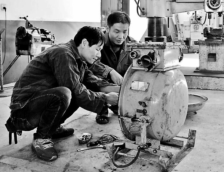 為不影響井下生產(chǎn),設(shè)備維修通常要在班末進行。9月28日,林超陽剛回到南安老家便接到井下設(shè)備出故障的電話,考慮同事大多回家過周末了,他便匆匆吃了幾口飯,還沒顧上問問半月不見的兒子學(xué)習(xí)、生活情況,就又趕回礦里下井。經(jīng)檢查,發(fā)現(xiàn)是變速箱齒輪壞了。這是一件費時費力的活,他帶隊連夜更換,一直忙到第二天清晨5點多才出井,保質(zhì)保量地按時完成了維修任務(wù)。