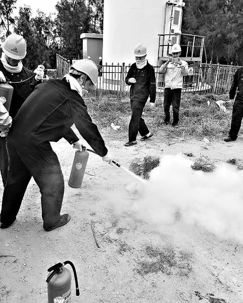 左圖為了提高處置火災(zāi)突發(fā)事件的能力,11月10日上午,福能新能源公司結(jié)合安全消防月活動,在莆田石井風(fēng)電場#10風(fēng)機(jī)現(xiàn)場,開展以“防范風(fēng)機(jī)周邊火災(zāi)事故”為主題的應(yīng)急實(shí)戰(zhàn)演練。(鄒楊金鄭煒?biāo)申悅ソz)
