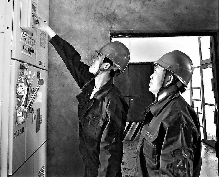 郭曉群(左)與同事在巡查電能表。 在福建煤電供電公司龍巖修試車間有這樣一個人,他雙眼睿智,身材瘦高挺拔,行剛毅從容的臉上總是掛著溫和陽光的笑容,渾身上下散發(fā)著一股軍人的氣質(zhì)。他是車間里的主心骨,帶領(lǐng)班組員工嚴格、認真地完成上級布置的各項工作,車間只要有他在就充滿溫暖力量。他就是修試車間主任郭曉群。