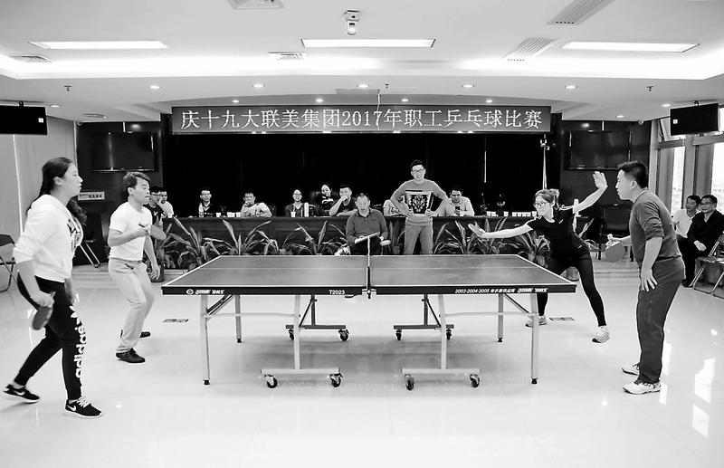 12月1日,聯(lián)美集團(tuán)開(kāi)展“慶十九大”乒乓球比賽,有力增強(qiáng)了職工的凝聚力、向心力和歸屬感。(郭銀平攝)