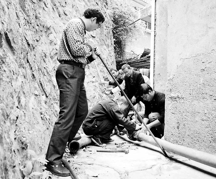 12月1日上午,天湖山能源公司多管部得知醫(yī)院后山坡水管老化破裂,立即組織黨員參與搶修工作,發(fā)揮黨員先鋒作用,深化“黨徽耀天湖”品牌創(chuàng)建。(黃藝欣攝)