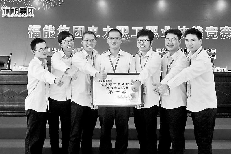 圖為晉江氣電員工在集團(tuán)電力職工職業(yè)技能競賽中獲得電力安全組團(tuán)體第一名。