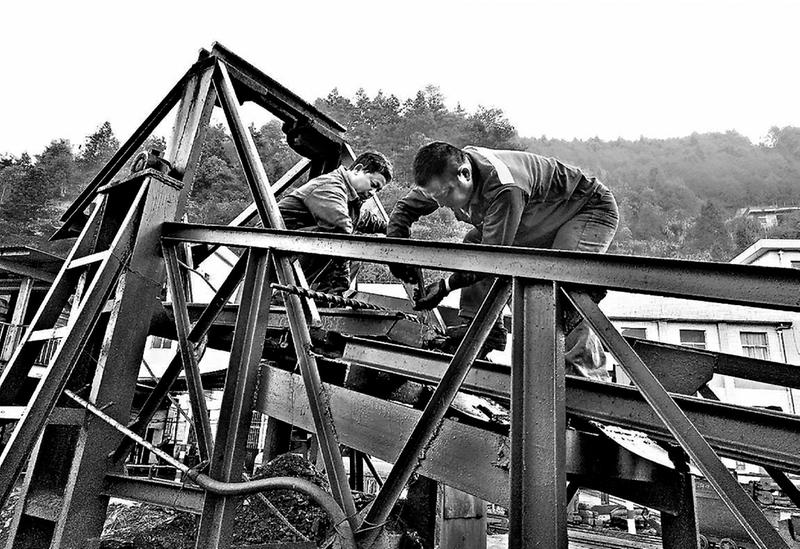 右圖為了提高矸石山的排矸效率,漳平煤業(yè)公司吾祠煤礦機(jī)修隊(duì)在不影響車皮運(yùn)輸?shù)那闆r下,對(duì)排矸架頭進(jìn)行維護(hù)。圖為11月28日,該礦機(jī)修人員對(duì)排矸鋼絲繩進(jìn)行維護(hù)。(沈建霞攝)