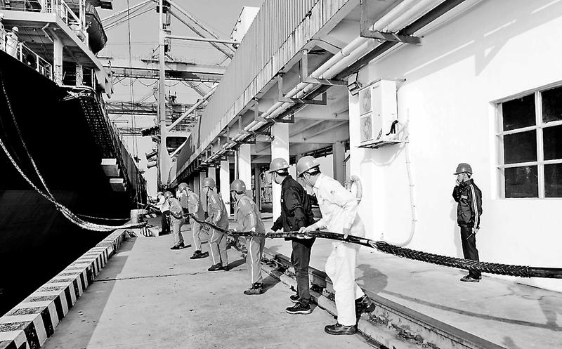 今后,停靠在該公司碼頭的各類船舶可以利用該系統(tǒng)代替船上的柴油發(fā)電機(jī)為自身供電,從而實現(xiàn)了靠港船舶的“零油耗、零排放、零噪音”,具有良好的環(huán)境效益和社會效益。項目每年可實現(xiàn)替代燃油630噸,可減少二氧化碳、氮氧化物、硫氧化物氣體和PM2.5排放量253.9噸。(盧清釗劉寒婷攝影報道)圖為鴻山熱電碼頭職工在連接電纜線。