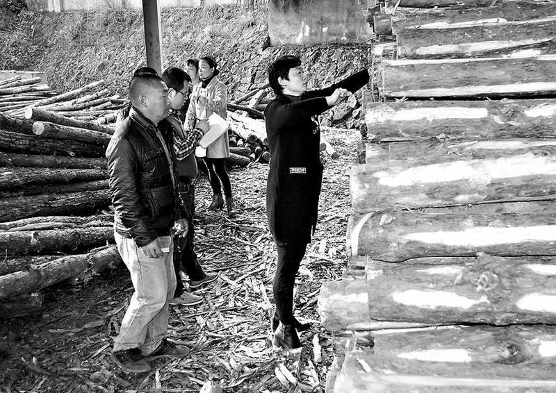 左圖 永安煤業(yè)公司蘇橋煤礦利用冬季天氣干燥的有利時(shí)機(jī),加緊抓好坑木的存儲(chǔ)工作,為來年的生產(chǎn)提供后勤保障。截至日前,該礦已存儲(chǔ)坑木230立方米。圖為12月12日,由礦紀(jì)檢監(jiān)察、坑木場管理員等組成的驗(yàn)收人員對進(jìn)場木頭進(jìn)行驗(yàn)收。(賴雄杰攝)