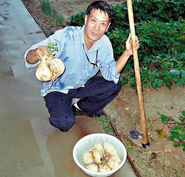 作者展示收獲的地瓜。