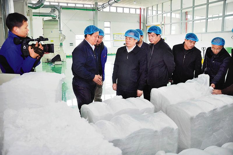 2017年12月28日上午,福建省委常委、副省長(zhǎng)周聯(lián)清(右四)攜省政府副秘書長(zhǎng)林杰、省經(jīng)信委和安監(jiān)局的相關(guān)負(fù)責(zé)人等到南紡高新材料產(chǎn)業(yè)園調(diào)研指導(dǎo)工作,南平市副市長(zhǎng)梁廉榮等陪同調(diào)研。周聯(lián)清指出,福能集團(tuán)幫助南紡打開(kāi)了轉(zhuǎn)型升級(jí)局面,希望南紡能抓住機(jī)遇做大做強(qiáng),并表示省委、省政府將會(huì)繼續(xù)支持和幫助企業(yè)發(fā)展。(詹旺秀李志華攝)