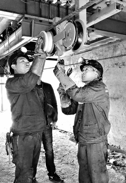 1月1日,永安煤業(yè)公司仙亭煤礦猴車乘人系統(tǒng)順利完成安裝調(diào)試。該礦從以往職工下井乘坐人車改為乘坐猴車。既縮短了下井職工出入井時間,減少體力消耗,也降低了安全隱患,提高了工作效率。圖為機電人員認(rèn)真調(diào)試猴車托輪。(薛文勇攝)