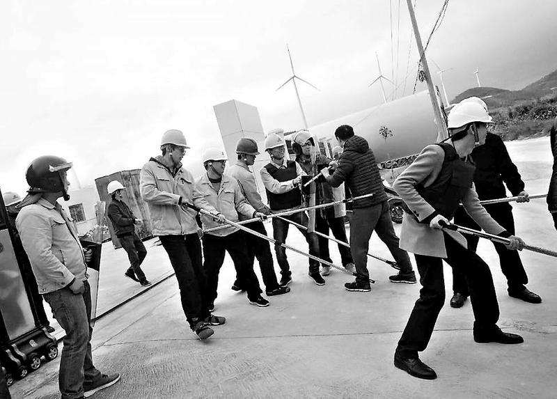 右圖2017年12月28日,福能新能源公司坪洋風(fēng)電場(chǎng)聯(lián)合埭頭、外山籌建處開(kāi)展反恐防暴演練,以提升場(chǎng)區(qū)員工應(yīng)對(duì)突發(fā)恐怖事件的處理能力。(郭阿清 鄒楊金 攝)