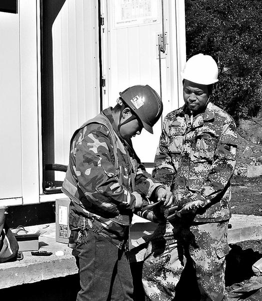 左圖2017年12月25日,隨著新一輪冷空氣的到來,上京礦區(qū)室外溫度降至零攝氏度左右。在后畬分布式光伏發(fā)電項(xiàng)目施工現(xiàn)場,永安煤業(yè)公司上京供電所十多名電力員工戰(zhàn)嚴(yán)寒搶施工,開展區(qū)配電室高低壓柜、電纜敷設(shè)、光伏板安裝等施工。圖為該所設(shè)備安裝電工在后畬光伏配電室制作進(jìn)線柜電纜接頭。(鄭春生 攝)