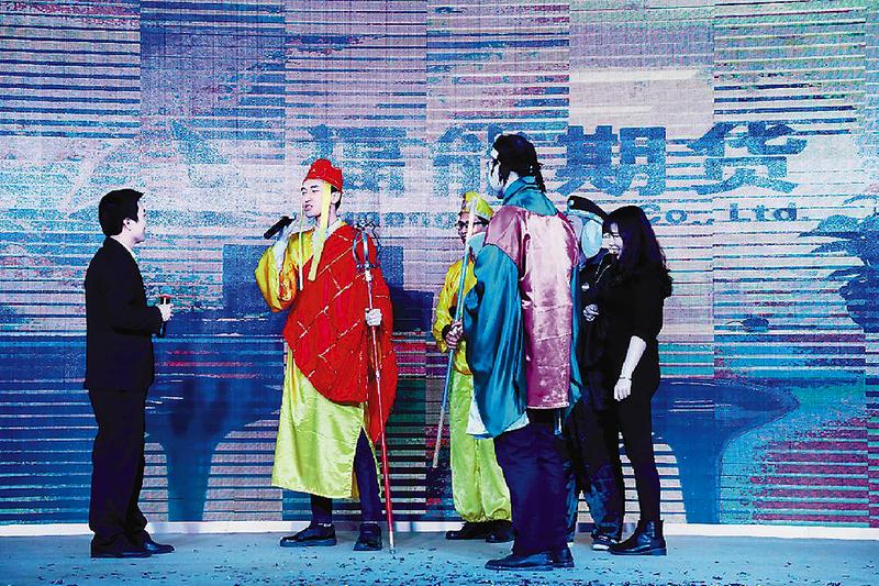 1月29日,福能期貨公司舉辦迎新春晚會,節(jié)目精彩紛呈。圖為小品《大話西游之福能外傳》。(期貨仁攝)