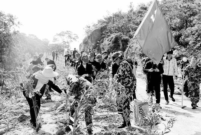 經(jīng)過3個多小時的辛勤勞動,4000余棵樹苗扎根沃土,為春日的大蚶山增添了盈盈新綠。