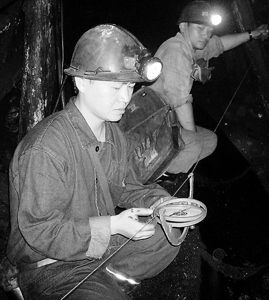 潘金鵬就像那生長迅速、抗風力強的綠化芒果樹,默默地積蓄力量,時節(jié)一到,便催生一樹的豐碩;他又像那掛滿枝頭的果實,外表看似青澀,內(nèi)在卻已悄然成熟了。(袁道霞)潘金鵬在掛羅盤與測工一起測量小井巷道方位