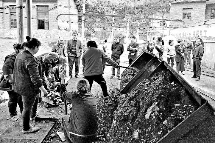 與會(huì)人員在文賓山煤礦井口了解煤質(zhì)監(jiān)察員抽檢含矸率。(蘇明珍攝)