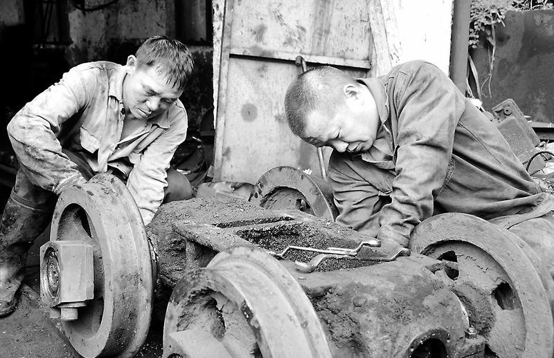 今年以來,福建煤電公司銅鑼坪礦機電部門進一步健全機電運輸設備隱患排查治理制度,對查出存在安全隱患的設備進行掛牌督辦,限期整改,從而提高設備的完好率。圖為5月15日,該礦機修人員在對電瓶車機械部件進行維護。(思忠攝影報道)