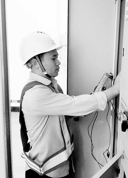王志陽在調(diào)試設(shè)備 在福能新能源公司每個(gè)項(xiàng)目組中都有幾位技術(shù)能手,他們是班組里上班時(shí)間最多的人,工作時(shí)嚴(yán)肅認(rèn)真,善于分析總結(jié)風(fēng)機(jī)故障的原因,把認(rèn)準(zhǔn)的事干好來。維檢中心第三項(xiàng)目組王志陽就是其中一位。