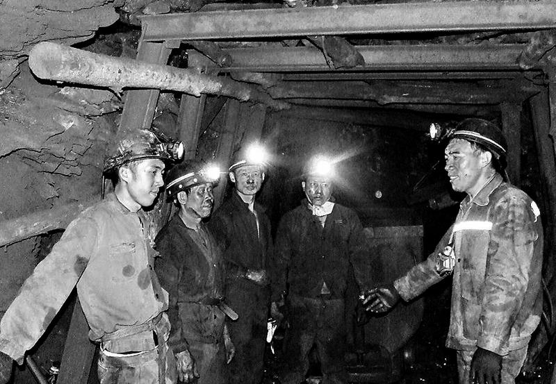 吳高品年紀算不上大,皺紋卻很深,經歷過歲月的滄桑,對于“礦工”二字的理解有他自己的深度。他還有一肚子的故事,要慢慢講下去,講給他自己的隊友,講給身邊的礦工。(袁道霞攝影報道)吳高品(右一)在工作面現場對作業人員進行安全培訓。