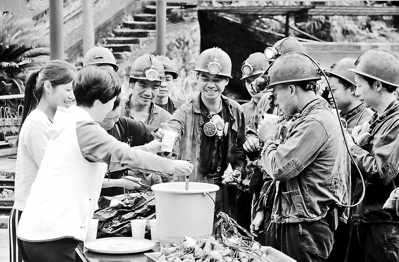 6月15日7時,永安煤業公司柯坑煤礦黨政辦、女工委組織女工協管員到井口為職工送剛出鍋的粽子、綠豆湯以及牛奶等節日禮品。女工協管員溫馨的安全叮囑暖到了每一位職工心里。(張志良攝)