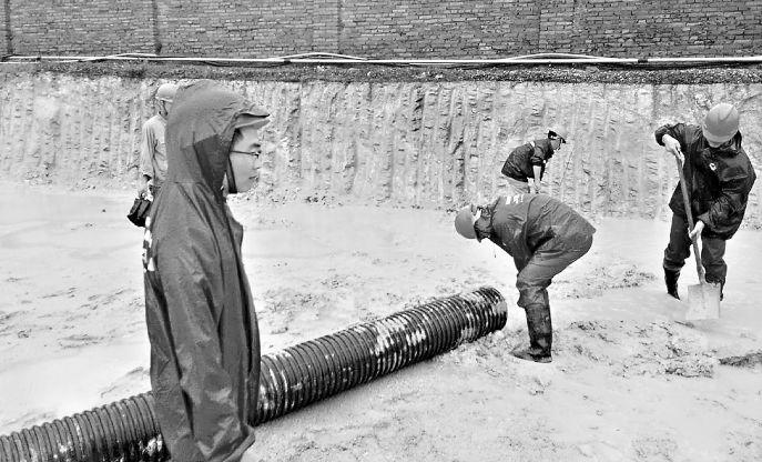 工程部安排專業(yè)人員協(xié)調好防汛工具、用電設施、排污管道的投用,保證哪里有積水,哪里就準備好充足的人員和設備,不讓積水停留;安監(jiān)部時刻在現場對基坑滑坡、用電設施和線路安全、人員防護用具配備進行監(jiān)督檢查,確保搶險工作安全有效推進。