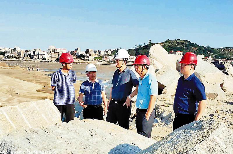 6月26日下午,省港航管理局林明標(biāo)副局長(zhǎng)(中)、湄洲灣港口管理局陳鴻朝副局長(zhǎng)(右二)等領(lǐng)導(dǎo)到肖厝作業(yè)區(qū)5#、6#泊位項(xiàng)目調(diào)研督查。(徐緯國(guó)攝)