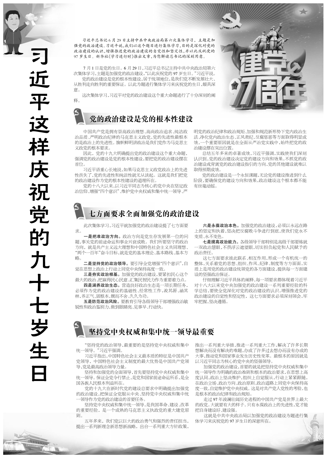 習(xí)近平這樣慶祝黨的九十七歲生日