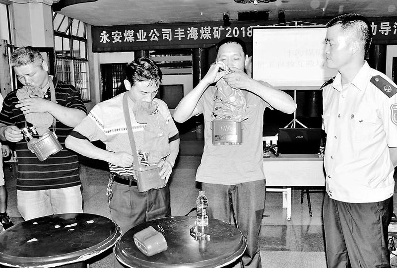 為進一步提升職工應對突發事件和意外傷害事故的應急救援和自救互救能力,7月16日晚上,永安煤業豐海煤礦組織160多名職工開展了應急自救技能培訓活動。該礦邀請了礦山救護隊的培訓老師對常見急救技巧以及滅火器、自救器等器材的使用方法進行培訓講解。圖為職工正在進行自救器操作演練。