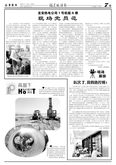 龍安熱電公司1號(hào)機(jī)組A修現(xiàn)場(chǎng)黨員范