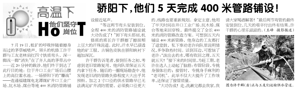 驕陽下,他們5天完成400米管路鋪設!