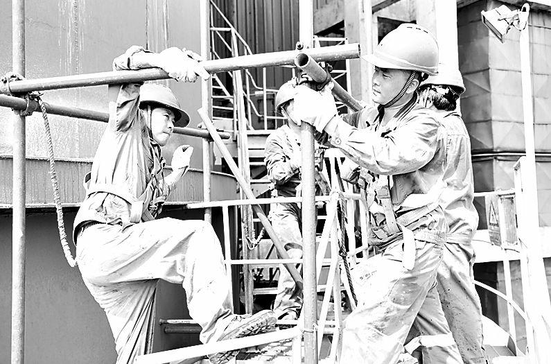 入夏以來,泉州地區(qū)氣溫節(jié)節(jié)攀升,氣象臺連續(xù)發(fā)布高溫橙色預(yù)警。為搶抓發(fā)電黃金期,石獅熱電公司檢修人員全力做好設(shè)備檢修保障工作,主動打好迎峰度夏攻堅戰(zhàn),全方位確保設(shè)備安全和機組穩(wěn)發(fā)多發(fā)。圖為檢修人員冒著烈日搭設(shè)腳手架準(zhǔn)備維修吸收塔。(謝志敏攝影報道)