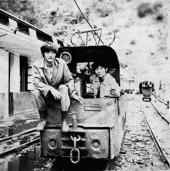 (岳華斌)作者父親(右)在井口電瓶車上留影。
