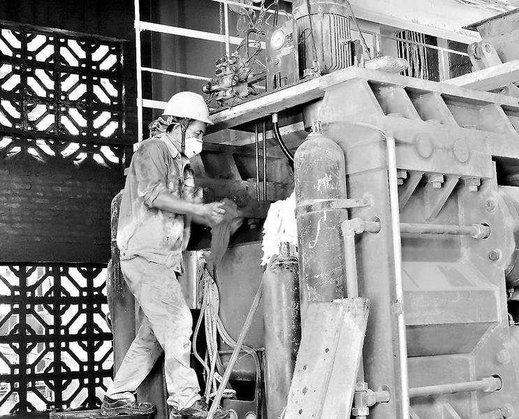 (蔣沛夏文/攝)圖為孫仁祥在水泥磨設(shè)備搶修現(xiàn)場(chǎng)。
