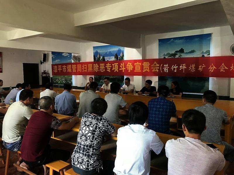 9月18日,漳平市煤炭管理局到漳平煤業公司箭竹坪煤礦開展掃黑除惡專項斗爭宣貫會,向煤礦干部職工進行政策宣傳,要求切實把掃黑除惡與安全生產結合起來,形成工作機制,維護煤礦安全穩定。(盧景喆攝)