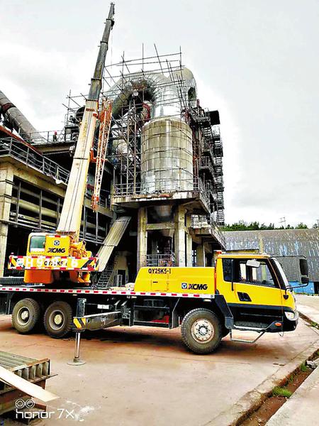 福建水泥煉石廠熟料分廠8#窯2018年度下半年中修于9月13日拉開序幕,計劃檢修時間為8天。此次檢修,距離中秋較近,工作量較大,并且很多的檢修位置是立體交叉作業,為了保證檢修的安全,分廠和安全人員對整個檢修安全工作作了精細的部署。圖片為吊車在8#窯的窯頭起吊重物。