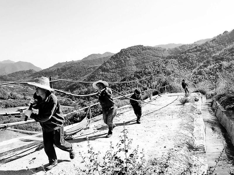 隨著+295風井工作面機械設(shè)備的增加,用電負荷加大。10月4日,漳平煤業(yè)公司箭竹坪煤礦黨支部組織黨員、職工共計12人,參加拉電纜義務勞動。經(jīng)過近3個小時的緊張勞動,完成了沿著山頂從+283主平硐電源接口點到+295風井電纜接口處的400米提升設(shè)備專用電纜的敷設(shè)工作。(盧景喆攝影報道)
