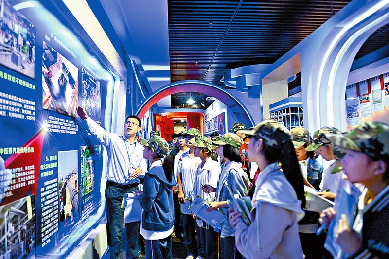 講解員向?qū)W生們介紹電廠先進(jìn)的環(huán)保技術(shù)。(劉寒婷攝)