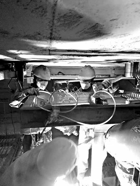 說起來容易,做起來卻是非常吃力。裝車平臺(tái)空間只有1.5米左右的高度,并且頭頂上方管線橫七豎八,大家必須貓腰在平臺(tái)上操作,稍不留意就會(huì)四處碰壁。焊接棒閘固定支架時(shí),王志華在氣動(dòng)閥底下鉆來鉆去,一會(huì)兒高,一會(huì)兒低,有時(shí)跪在篦網(wǎng)式平臺(tái)上連續(xù)焊接幾十分鐘才停下來喘口氣。當(dāng)有工友去接他手中的焊把,讓他休息一會(huì)時(shí),他說:“沒關(guān)系,大家一起干吧,干完早一點(diǎn)回家。”經(jīng)過“參戰(zhàn)”工友們4個(gè)多小時(shí)的共同努力,嶄新的棒閘更換完畢,生產(chǎn)恢復(fù)正常。