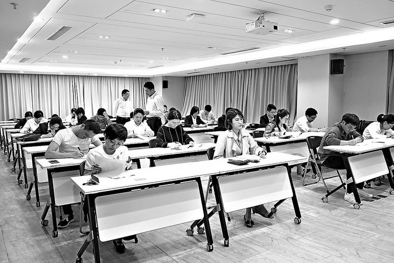 12月4日晚上,福能集團(tuán)財(cái)務(wù)公司開展2018年度業(yè)務(wù)能力測試。考試采取限時封閉答題的形式,內(nèi)容涵蓋企業(yè)集團(tuán)財(cái)務(wù)公司管理辦法、銀行知識與業(yè)務(wù)、財(cái)務(wù)會計(jì)基礎(chǔ)知識、黨建紀(jì)檢等相關(guān)應(yīng)知應(yīng)會內(nèi)容。(陳敏 攝影報(bào)道)