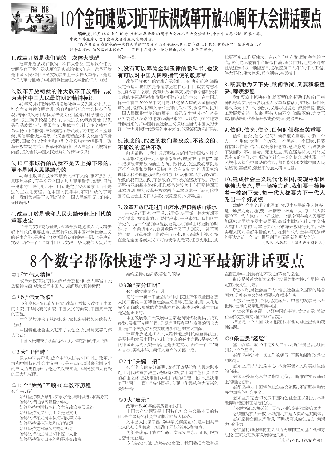 10個(gè)金句速覽習(xí)近平慶祝改革開放40周年大會(huì)講話要點(diǎn)